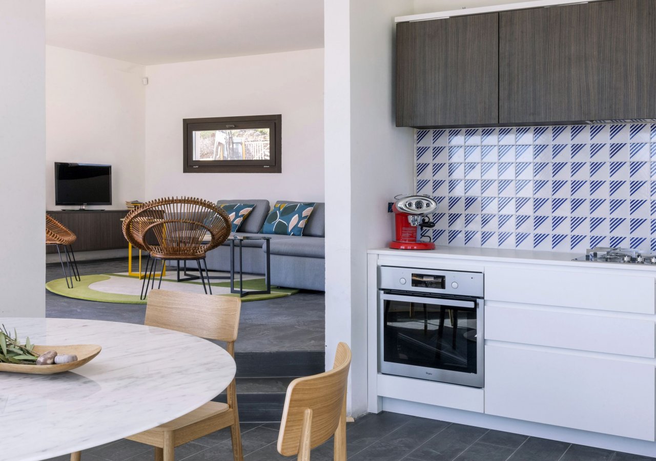 Camere ampie e luminose, progettate con l’obiettivo di fornire il massimo confort e il massimo della privacy. Camere standard, superior e deluxe (con veranda vista mare, che si affaccia sul giardino) al piano terra. Ampia Suite con terrazza panoramica vista mare al primo piano, dotata di due camere da letto e due bagno. Gli ospiti alloggiati possono inoltre utilizzare gli spazi comuni, come la cucina e le aree relax all’aperto.